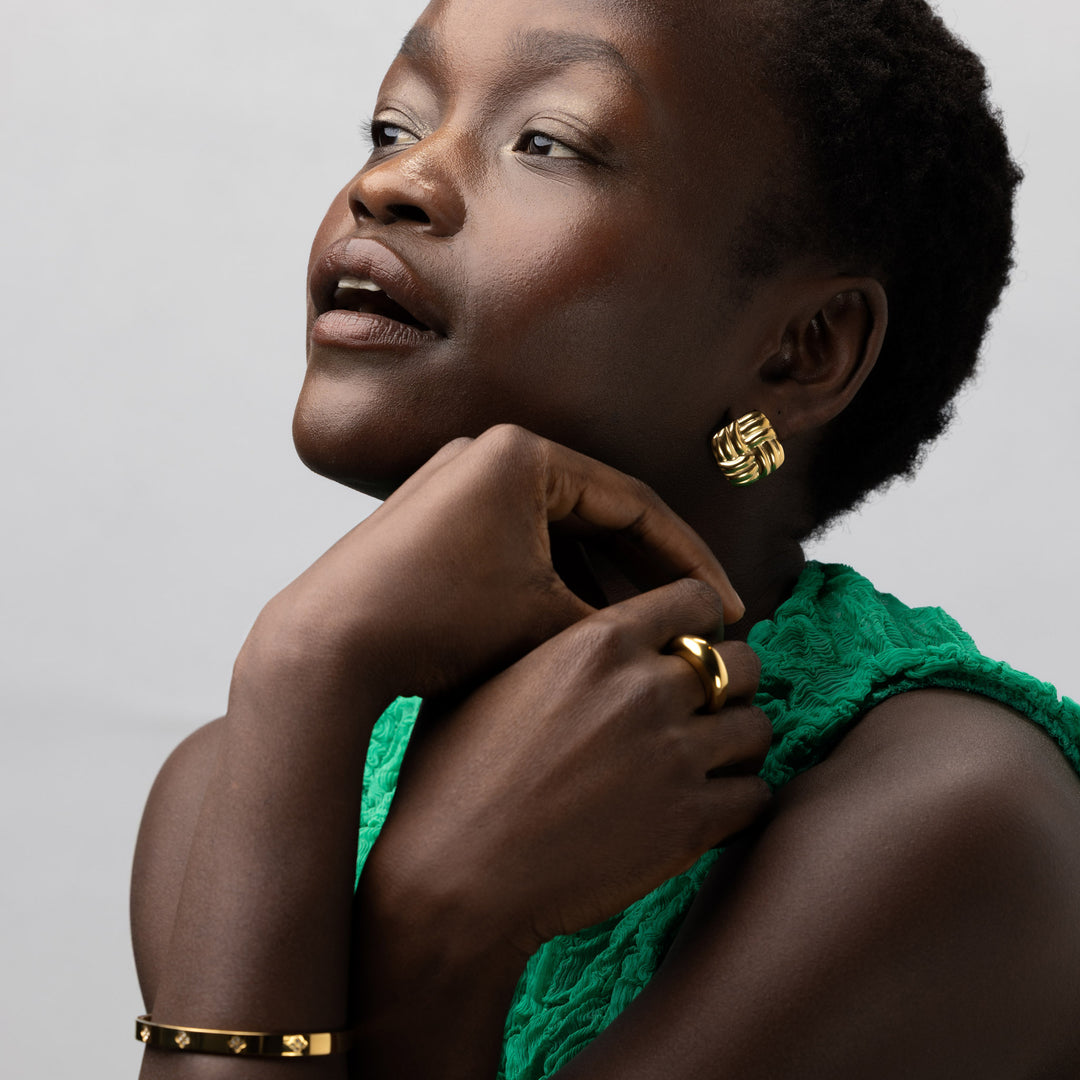Vervollständigen Sie Ihren Look mit den Hilde Knot Stud Earrings. Diese zeitlosen Ohrstecker aus Edelstahl sind perfekt, um Ihrem Alltagsoutfit subtile Eleganz zu verleihen. Einfach, langlebig und endlos tragbar – Hilde ist die Definition von mühelosem Stil.