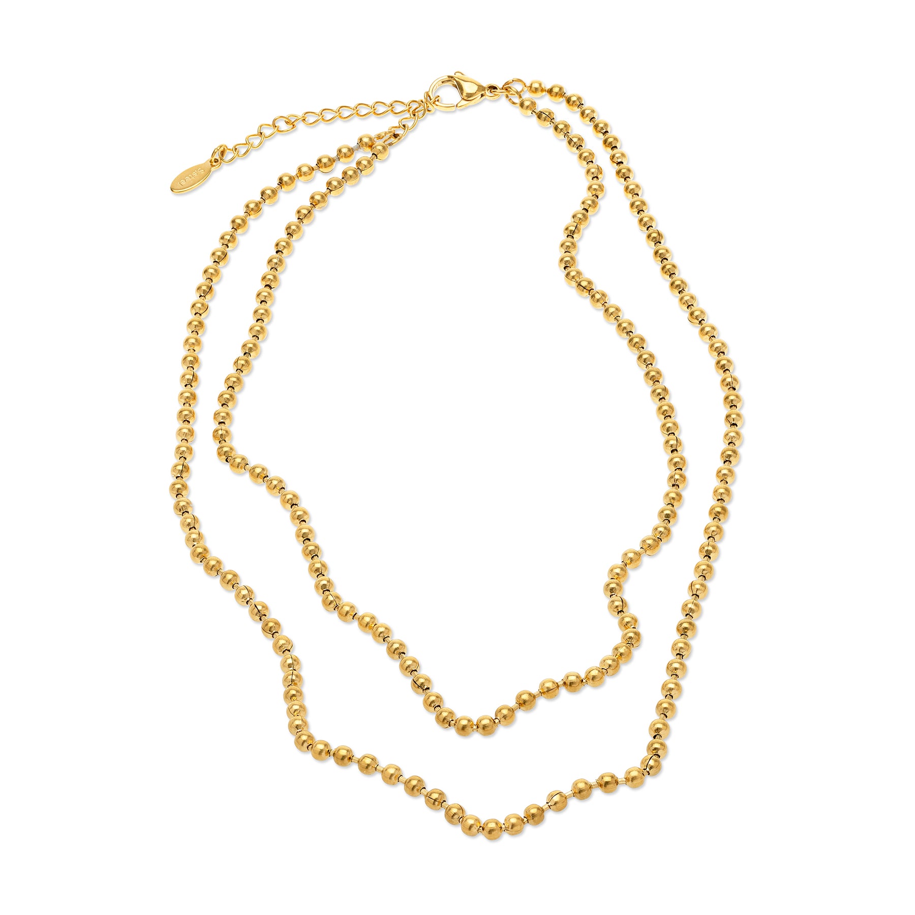 Modern design with this duo ball chain necklace. This delicate stainless steel necklace features two sleek ball chains in different lengths. It is water-resistant, and tarnish-free for understated style.