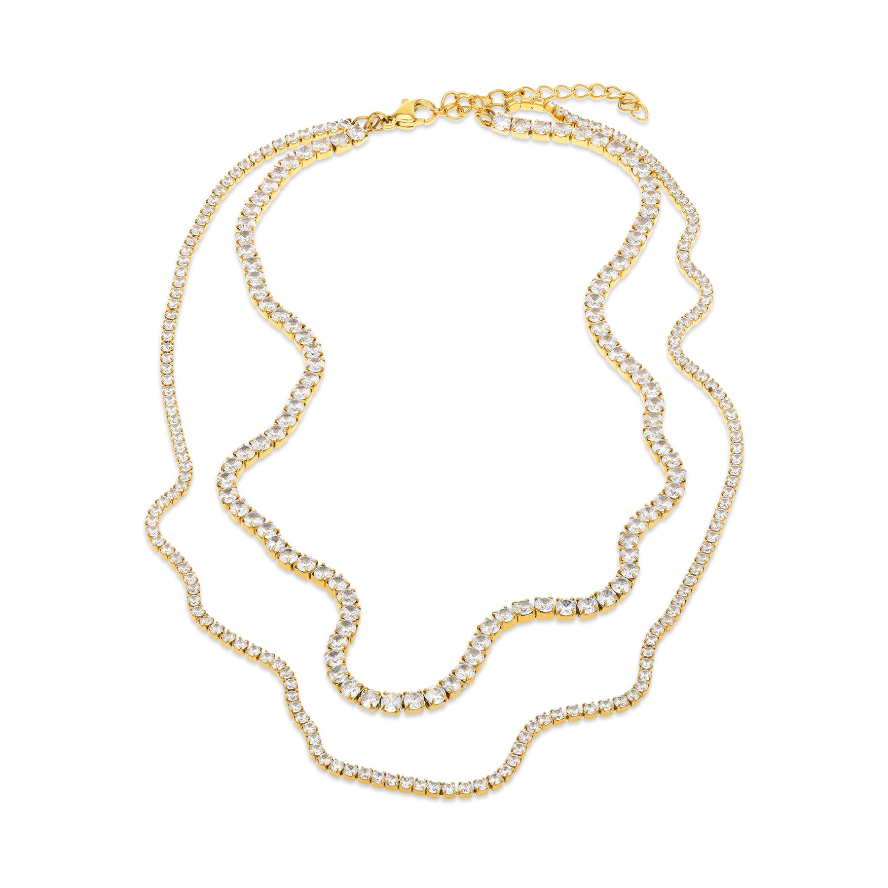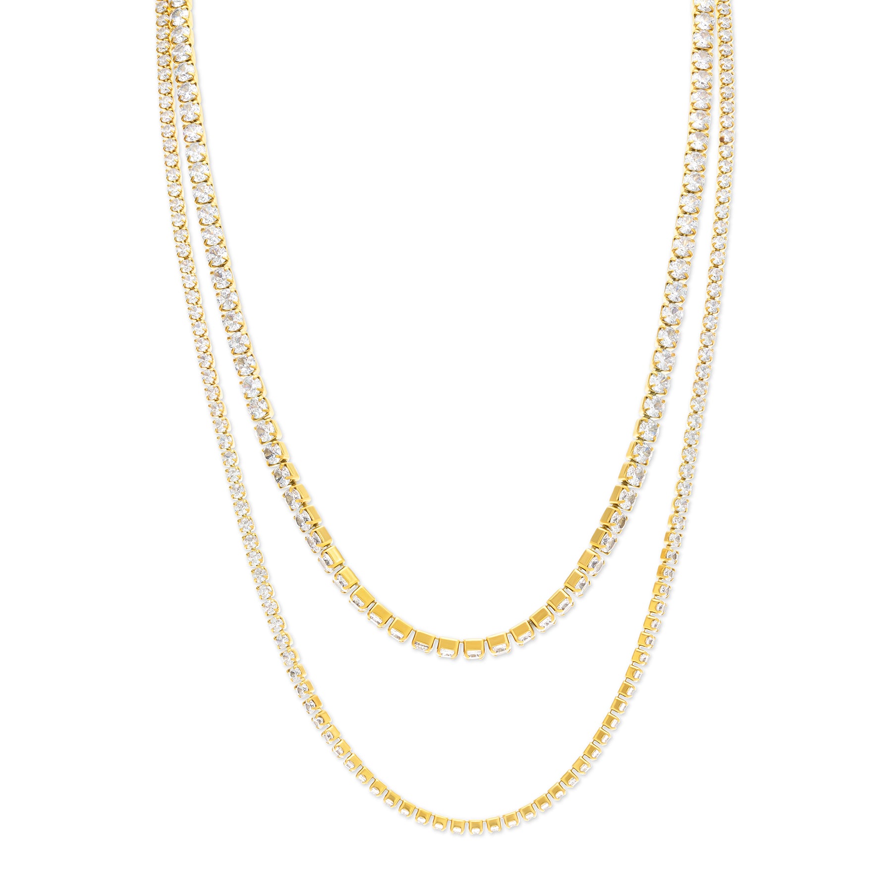 Un éclat subtil avec ce collier en cristal. Ce collier délicat en acier inoxydable présente deux chaînes ornées de cristaux avec une sensation de bracelet tennis. Il est résistant à l'eau et sans ternissement pour une élégance raffinée.
