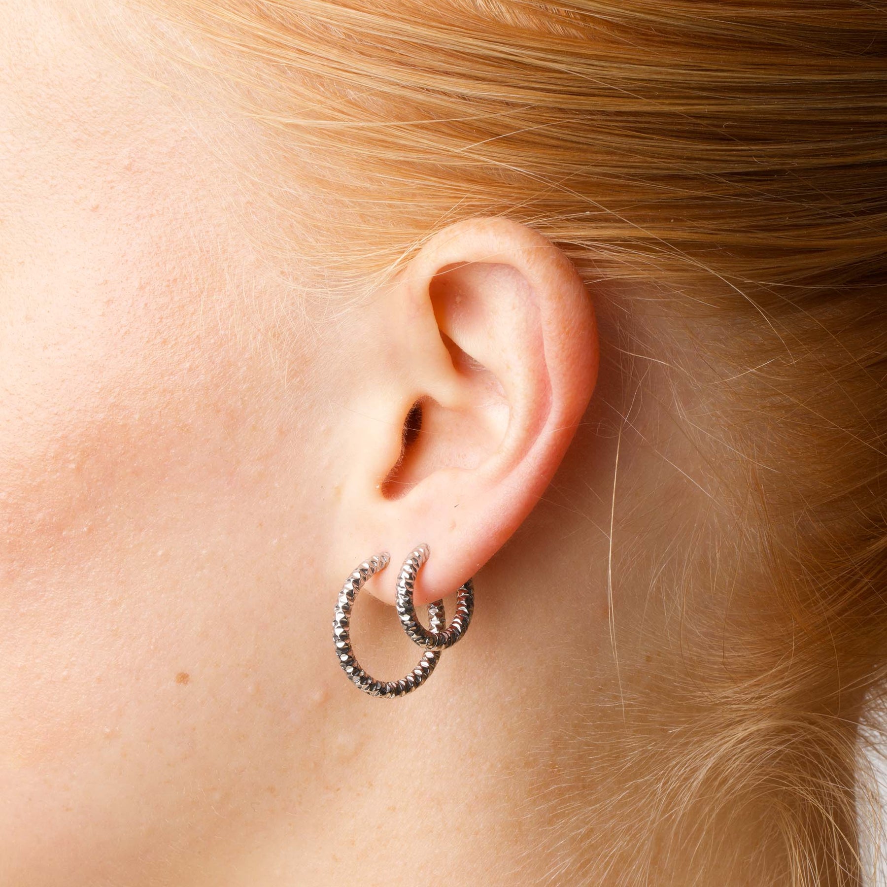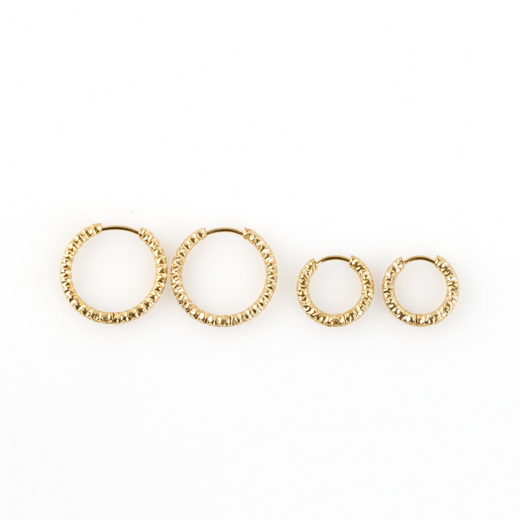 Boucles d'oreilles créoles essentielles au quotidien avec un design structuré. Ces créoles classiques et légères en acier inoxydable sont résistantes à l'eau et sans ternissement pour un port sans effort. Disponibles en argent et or pour s'adapter à votre style et vos besoins.