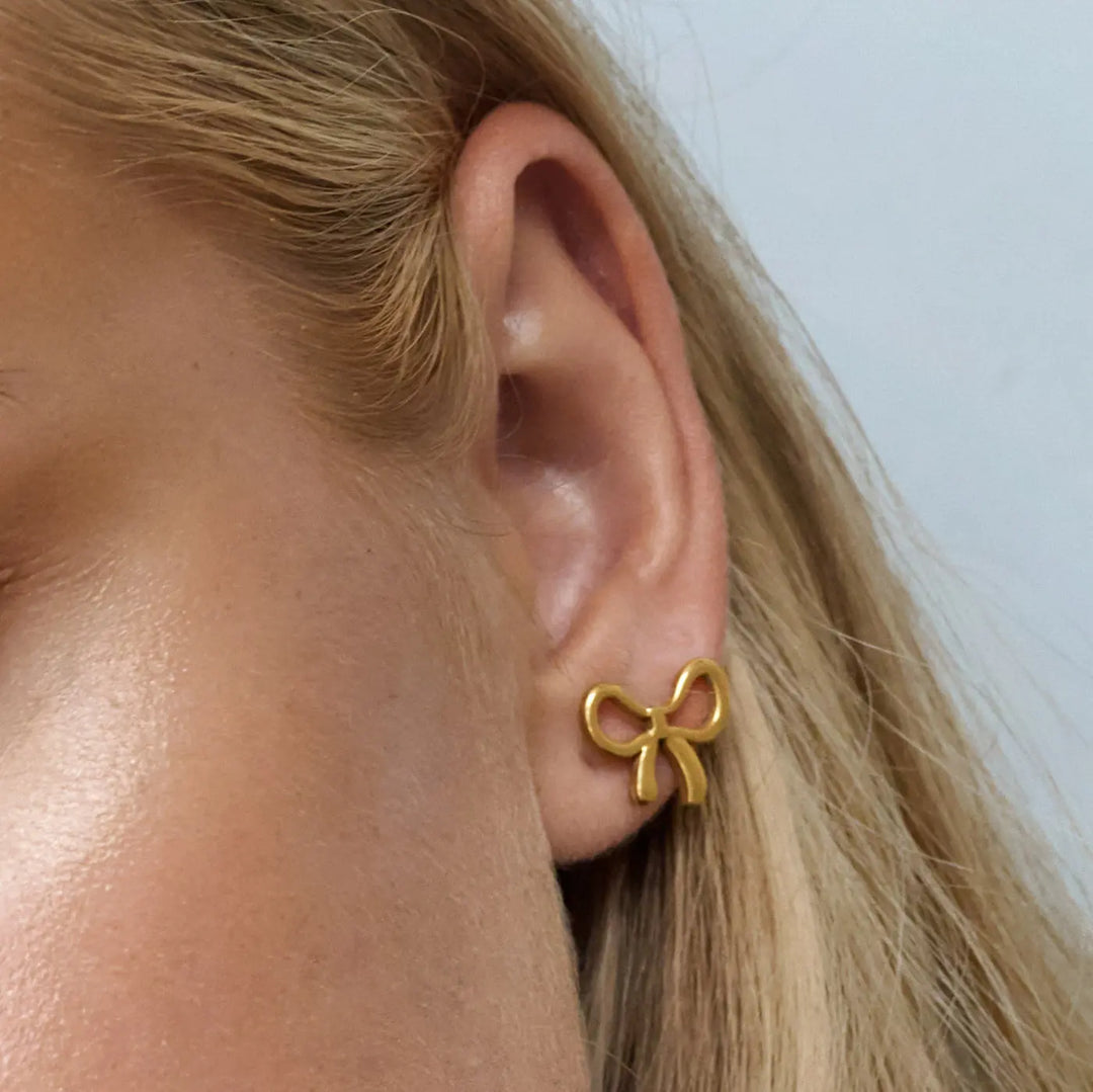 Boucles d'oreilles à nœud classiques qui ajoutent les détails les plus mignons à votre tenue. Le meilleur, c’est qu’ils sont en acier inoxydable et plaqués d’or véritable 18 carats. En d'autres termes, ce sont de l'eau