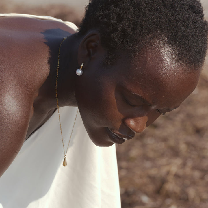 A trendy drop necklace in gold, a beloved classic, has now been updated with an elegant chain that holds the beautiful drop. The hanging necklace is made from waterproof stainless steel with a shiny 18k gold plating, making it both sleek and durable. Pair it with earrings from our extensive collection for a complete look.