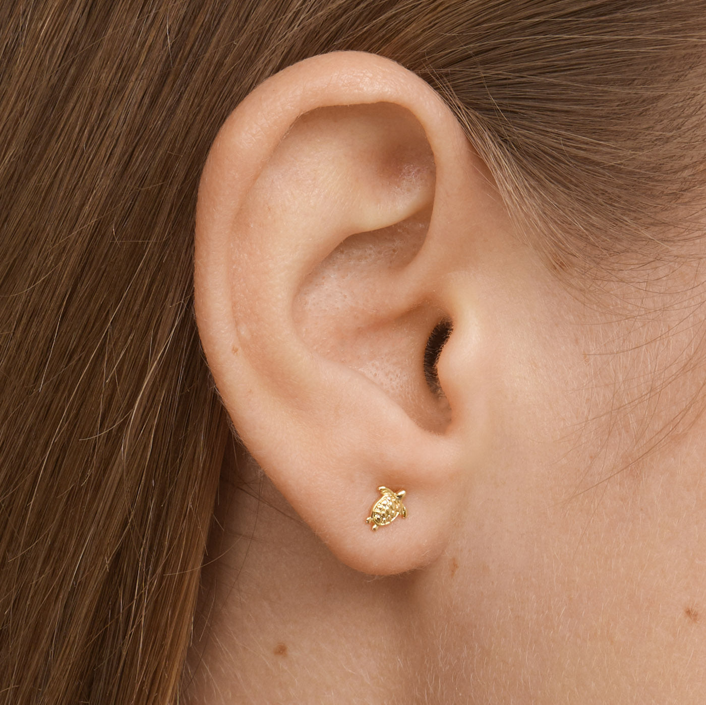 Piccola tartaruga, piena di fascino! Questi orecchini a tartaruga Lori sono un simbolo di saggezza, pazienza e amore per l'oceano. Questi adorabili orecchini a bottone a forma di tartaruga sono perfetti per chiunque voglia portare un po' di mare con sé ogni giorno. Perfetti da indossare a strati o da soli.