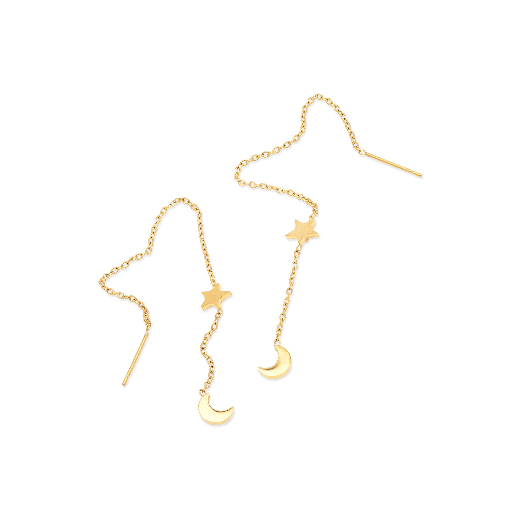 Orecchini a catena alla moda con luna e stelle per un tocco di stile senza sforzo. Questi orecchini pendenti a catena sono realizzati in acciaio inossidabile resistente all'acqua e all'ossidazione per un look moderno. Disponibili in argento e oro per adattarsi al tuo stile e alle tue esigenze.