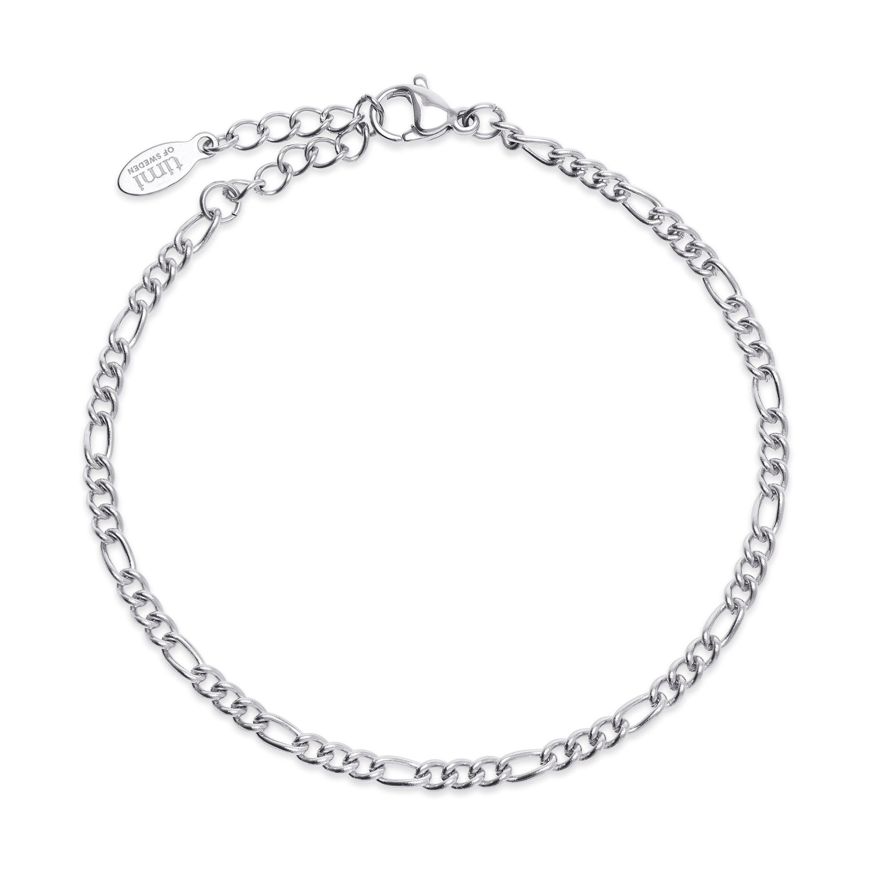 Bracciale a catena classico e versatile. Questo elegante bracciale in acciaio inossidabile presenta un design a catena senza tempo, è resistente all'acqua e non si ossida per uno stile duraturo. Disponibile in argento & oro per adattarsi al tuo stile e alle tue esigenze.