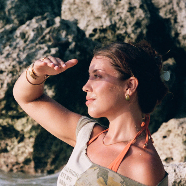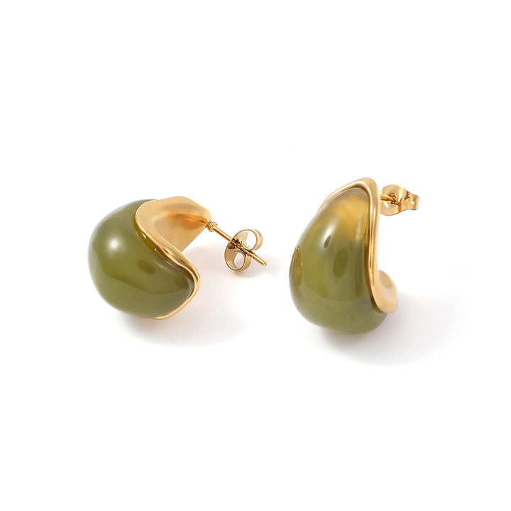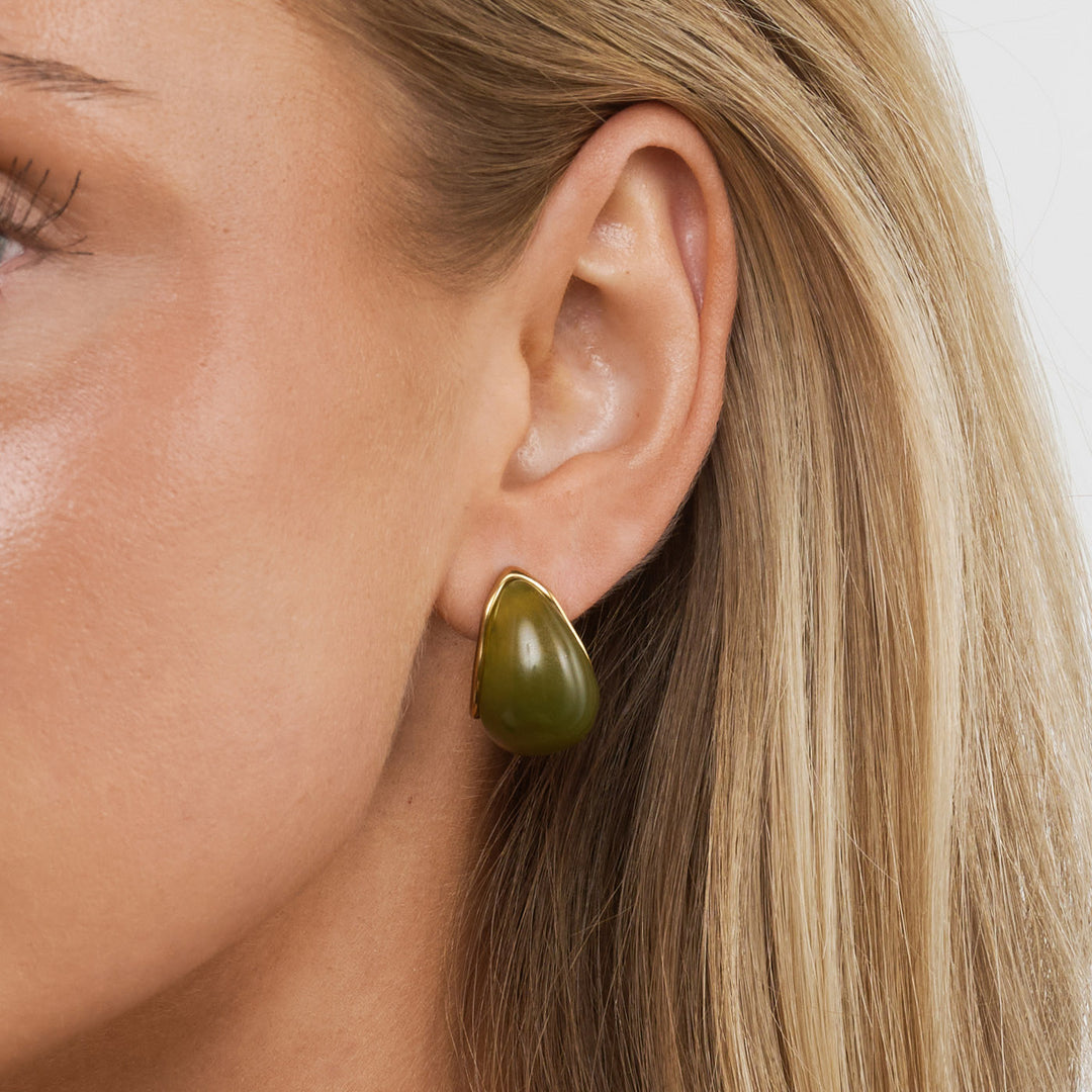 Lass es knallen. Carin Hoops mischen grünes Harz mit wasserbeständig Edelstahl für eine spaßige, frische Variante deiner üblichen Ohrringe. Leicht, auffällig und bereit, aufzufallen.