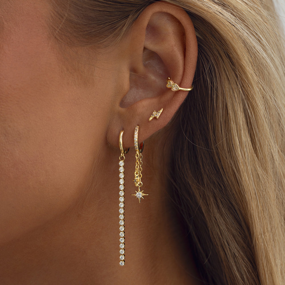 Die Zwei Kristallherzen Ear Cuff bringt doppelten Charme! Mit zwei funkelnden herzförmigen Kristallen verleiht dieser Cuff jedem Outfit eine romantische Note – kein Piercing erforderlich! Perfekt zum Schichten oder solo für einen eleganten Glanz.