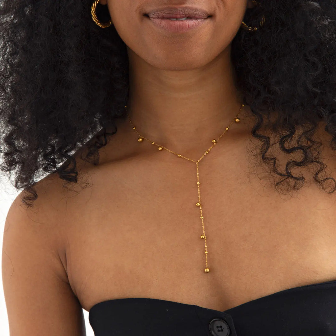 Diese Lasso-Halskette ist ein schönes Accessoire für jedes Outfit. Kombinieren Sie es mit einem Kleid und schon sind Sie bereit für die Party. Kombinieren Sie es mit Ihrem Lieblings-T-Shirt und Sie haben einen gehobenen Alltagslook!