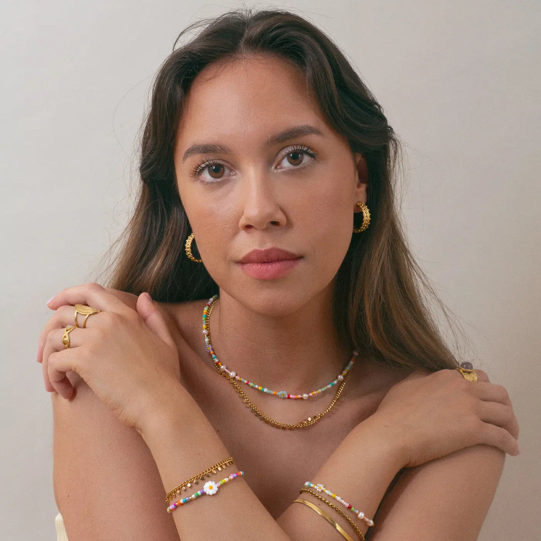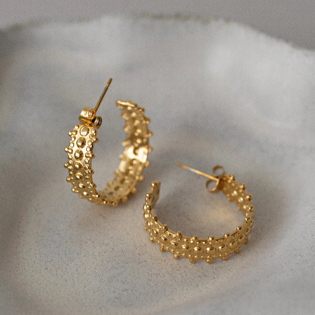 Perfekte leichte Creolen für den Alltag. Die Ohrringe sind aus Edelstahl gefertigt und mit 18-karätigem Echtgold vergoldet. Mit anderen Worten: Es ist wasserbeständig und läuft nicht an.